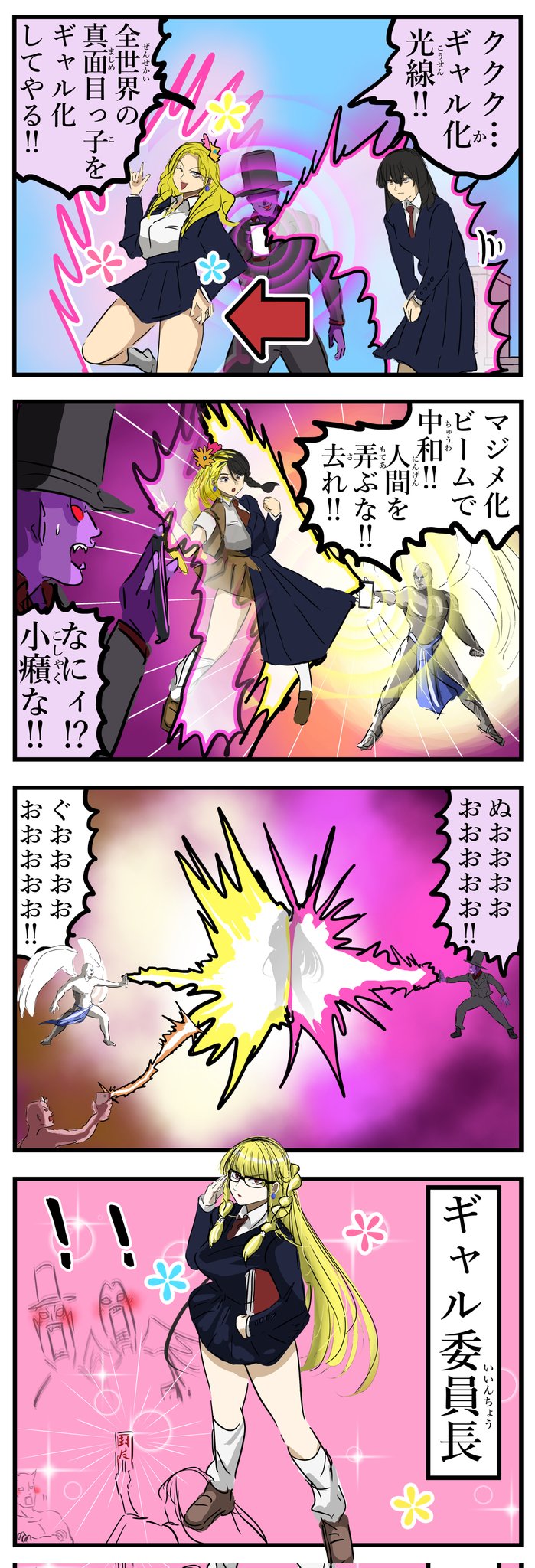 「呵呵呵,辣妹化光線!把全世界的認真女孩都變成辣妹吧!」