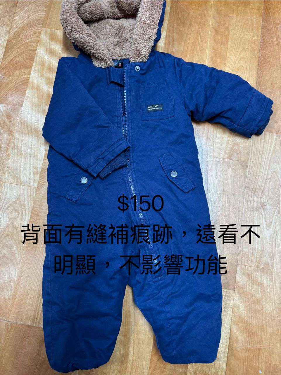 Futafuta 80公分超保暖連身外套,很帥氣,背後有一處縫補,遠看不明顯便宜賣,$150