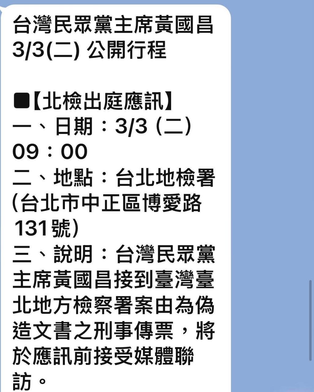 : 明天國昌老師要出庭應訊示範帶?