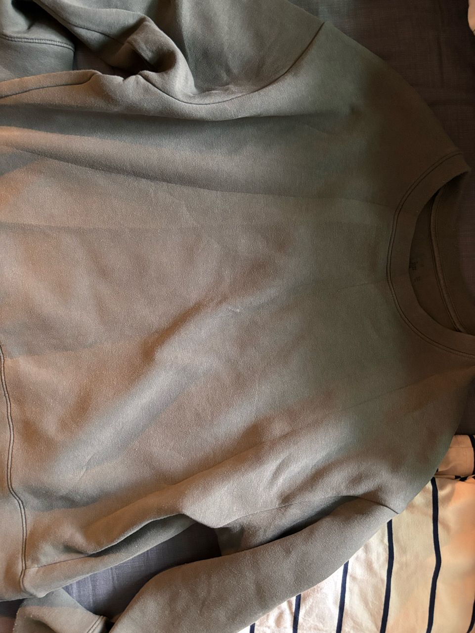 有一點洗到藍色衣服的染色 Muji 大學T https://i.mopix.cc/hYir5l.jpg